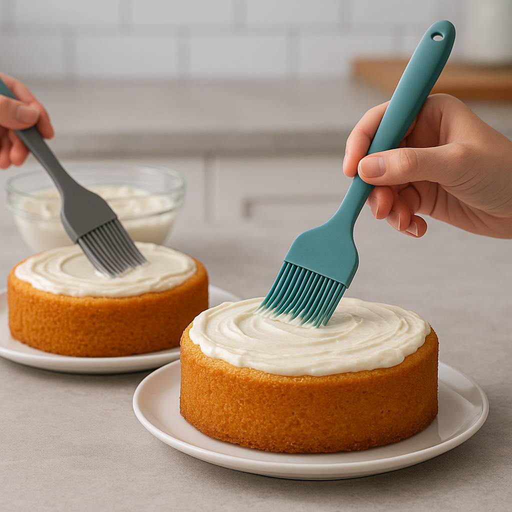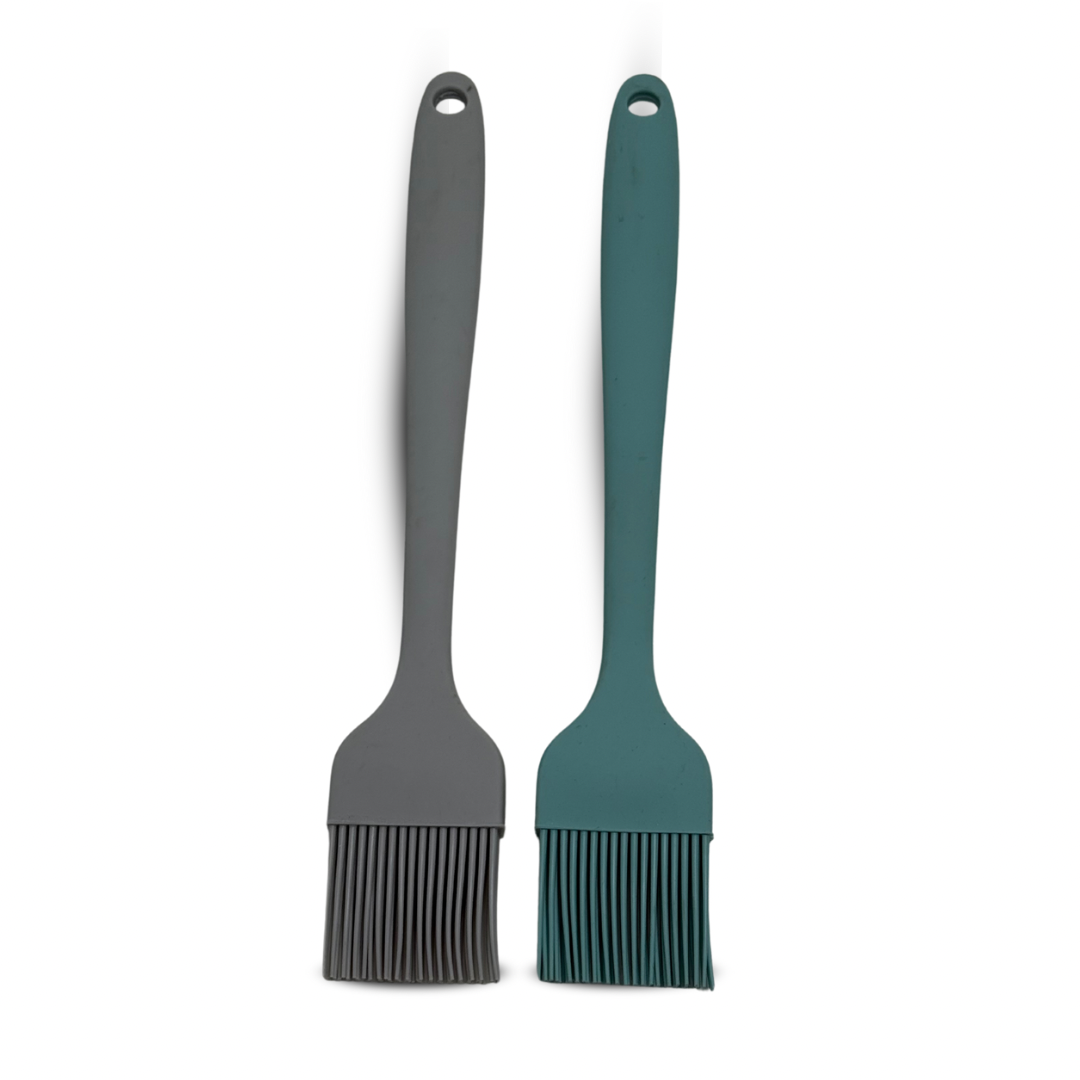 Pack de 2 pinceles reposteros de silicona firme y resistente al calor. Ideales para aplicar mantequilla, huevo, glaseado o salsas con precisión. Su diseño ergonómico y cerdas engomadas evitan desprendimientos y aseguran una aplicación uniforme.